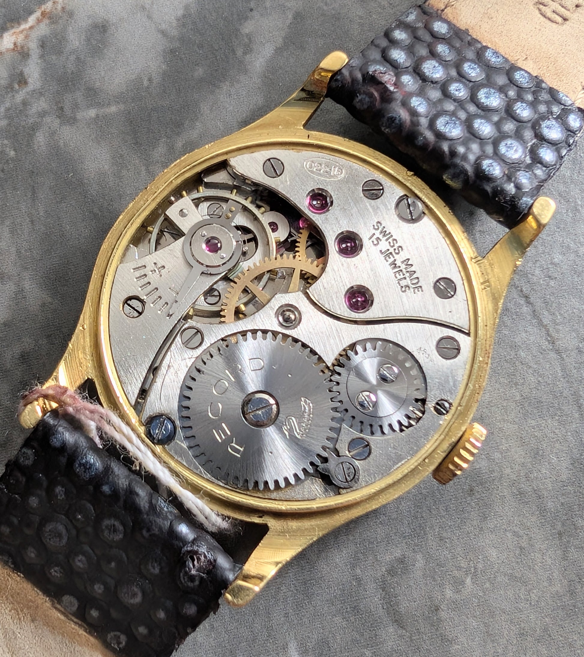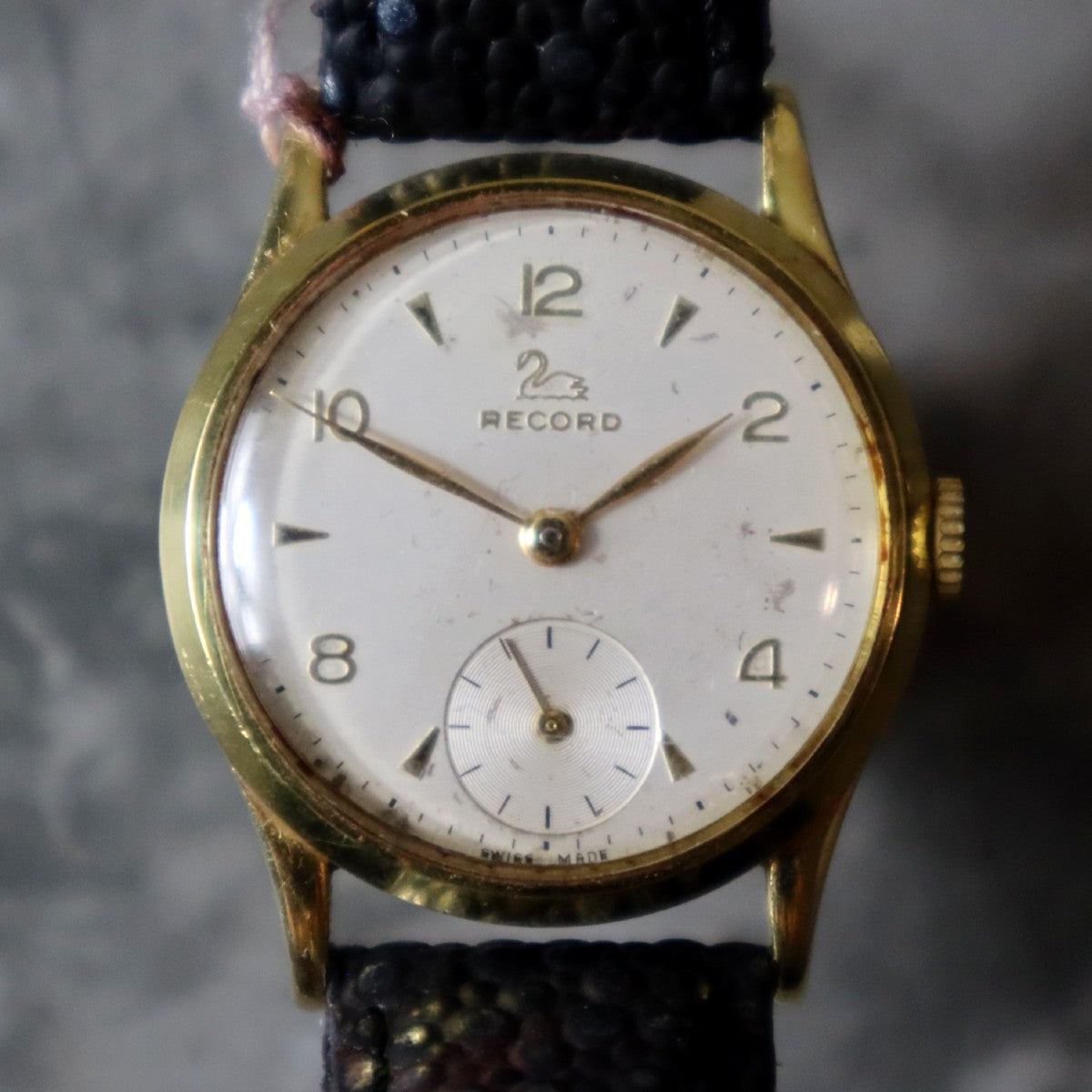 For sale we have a vintage 1940s Record watch. The watch is made of solid 18ct gold, the caseback alone weighs over 5 grams. The case size is 31mm excluding the crown and the Calibre’s 022-18. The watch is in great working order.