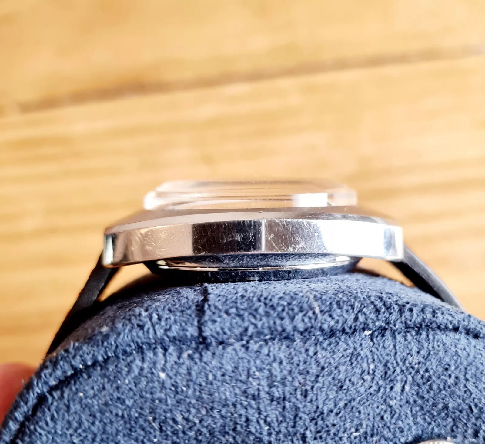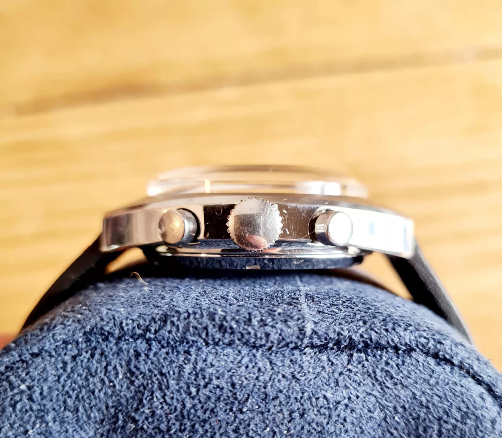 The movement has been recently fully serviced and keeps very good time. The watch is sold with a new strap looks great on the wrist.