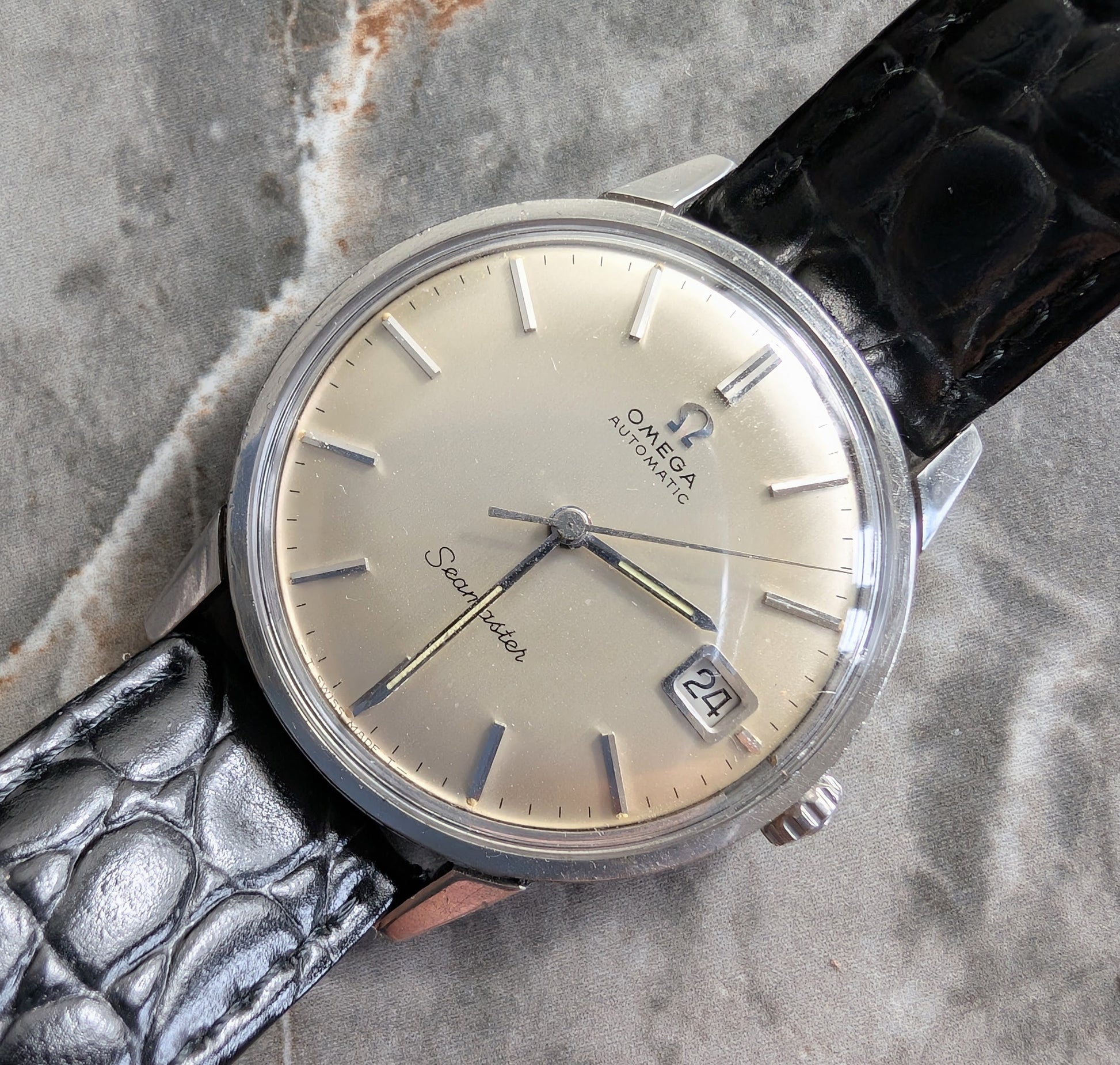For sale we have a 1966 Omega Seamaster reference 166.002. As can be seen from the photos the dial is a great condition, this is a classic watch with a enviable history. The case does show some wear which is expected for a watch from the 1960s.