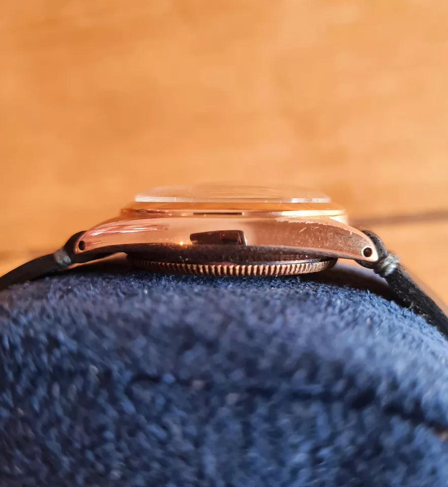 The watch has been fully serviced and is running as it should. The dial and hands are original and it is clear this watch has been cosseted in a safe for many years.