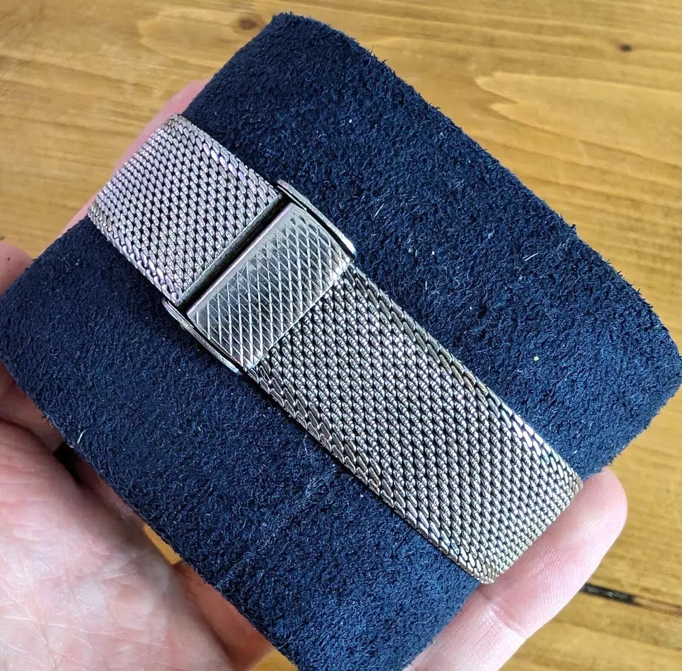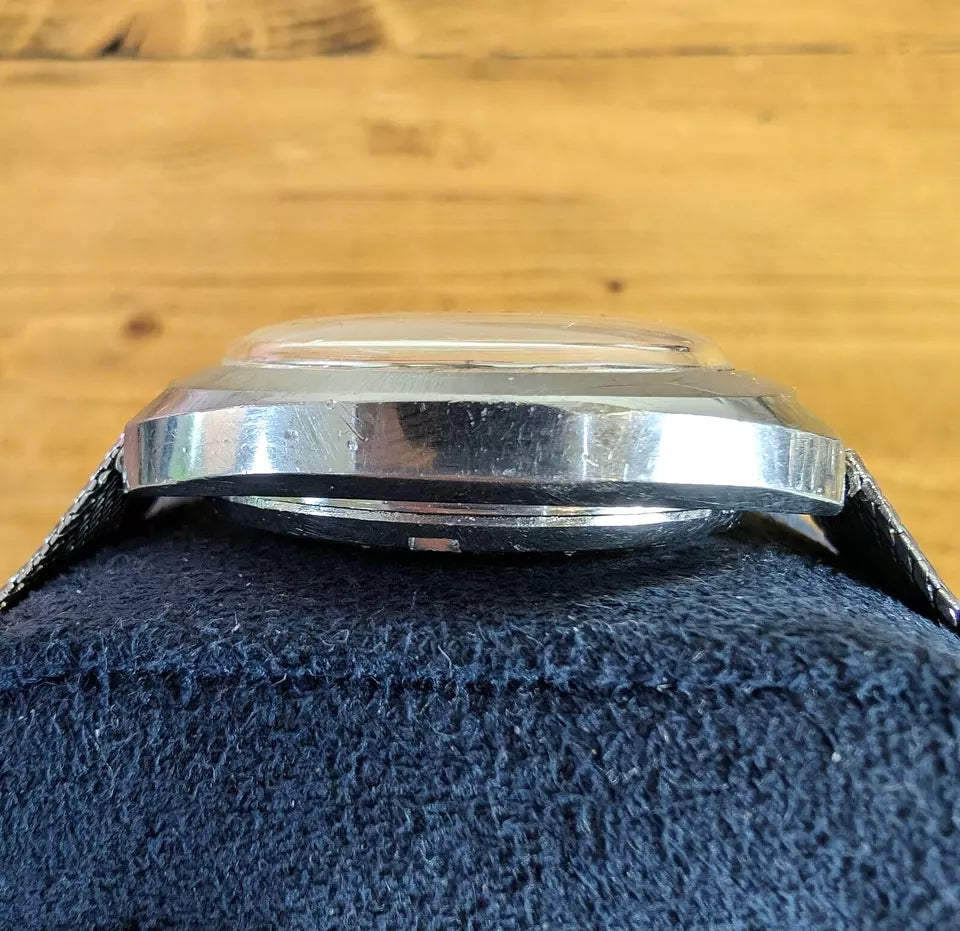 For sale we have a vintage 1970s Dugena chronograph. This is a very nice example and uses a Valjoux calibre 7733 movement, which is featured in many watches across the 1960s and 1970s. The watch is in full working order and is fitted with a stainless steel mesh bracelet.